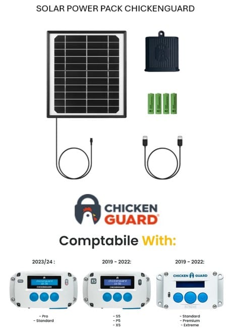 Chickenguard Pro Solar losse solar set. Bestaande uit zonnepaneel, powerbank en aansluitkabels. Past op meeste modellen Chickenguard die sinds 2019 beschikbaar zijn.