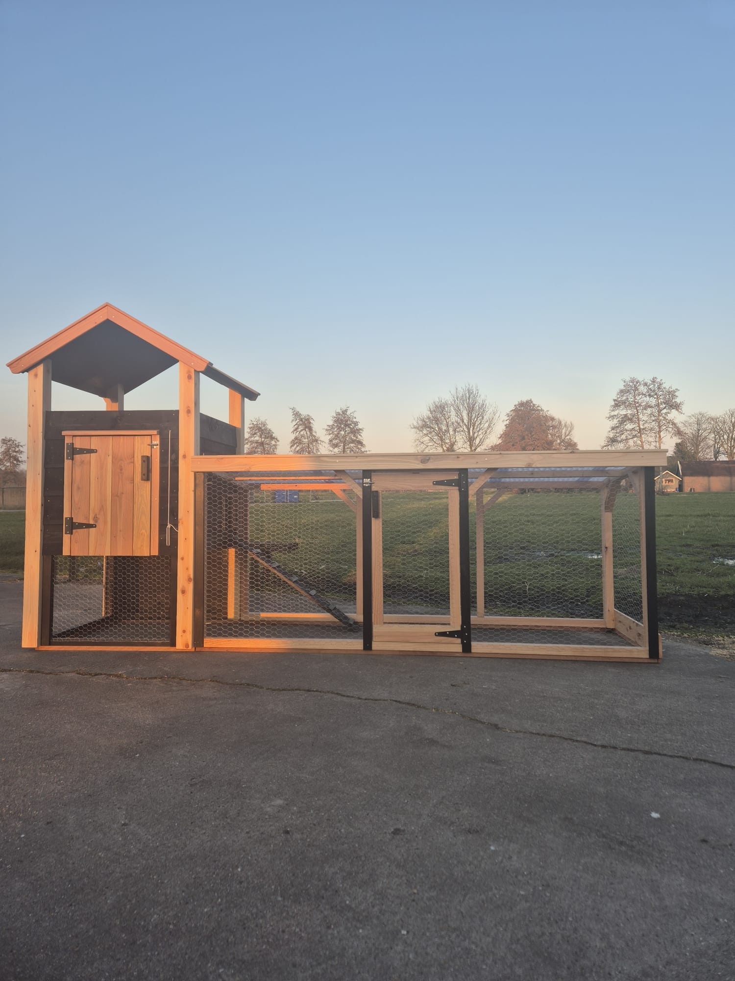 Optioneel verkrijgbaar met ren van 3,5 meter (incl. deel onder hok). Meerprijs voor de ren is € 295.
